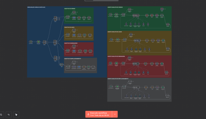 Aqui entra a parte mais estratégica. Criamos os fluxos no N8n com base nas suas necessidades reais: captação de leads, notificações, integração com plataformas de anúncio, CRM, planilhas, WhatsApp, etc.